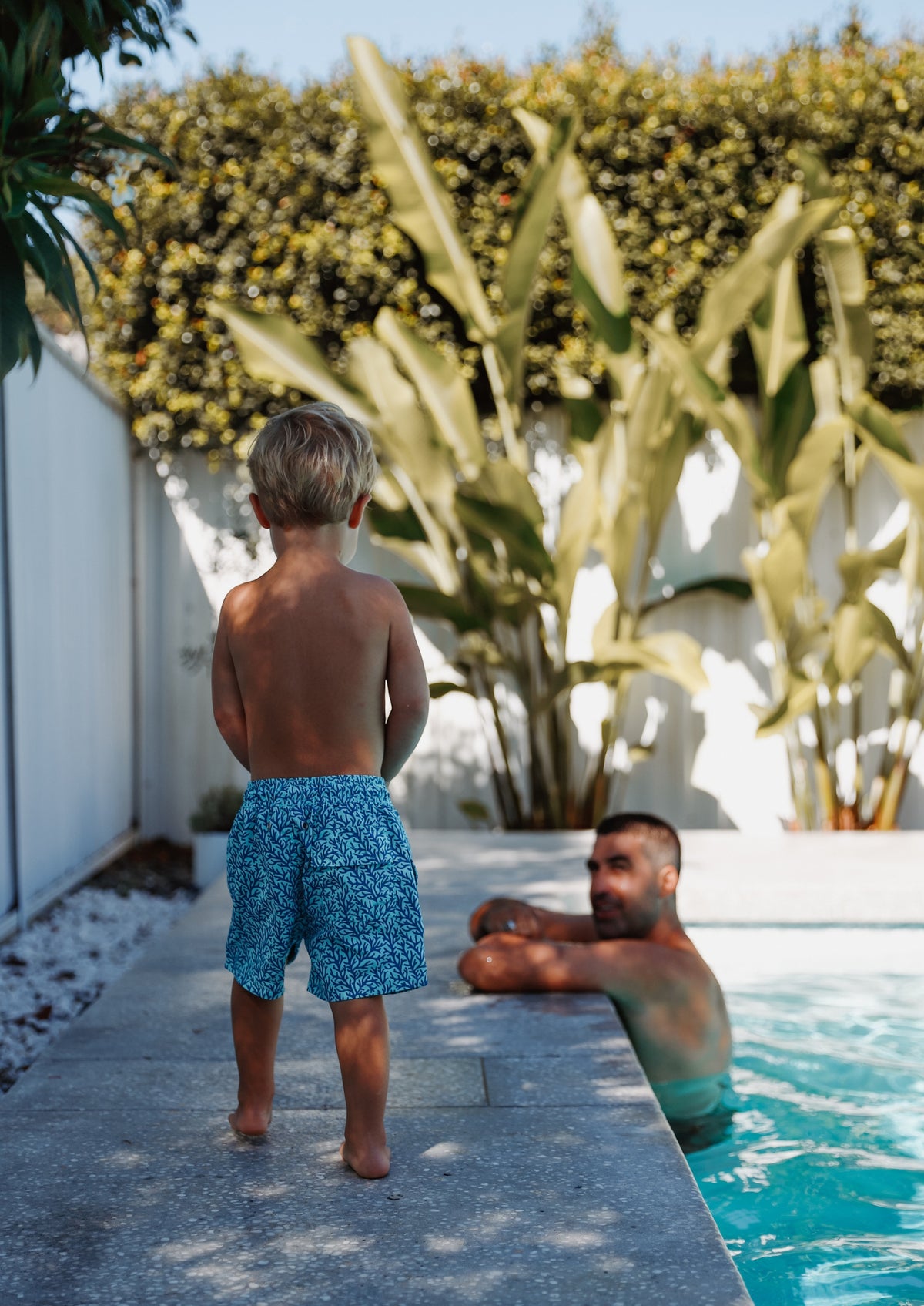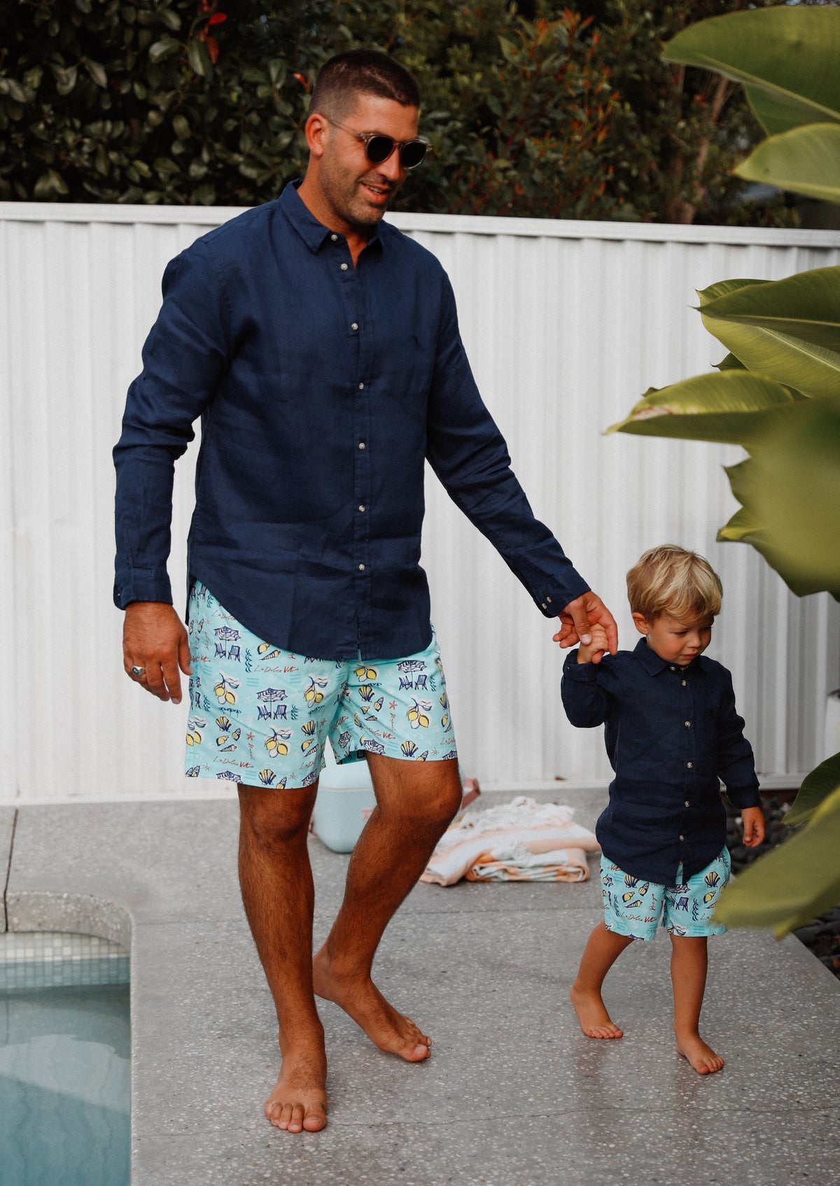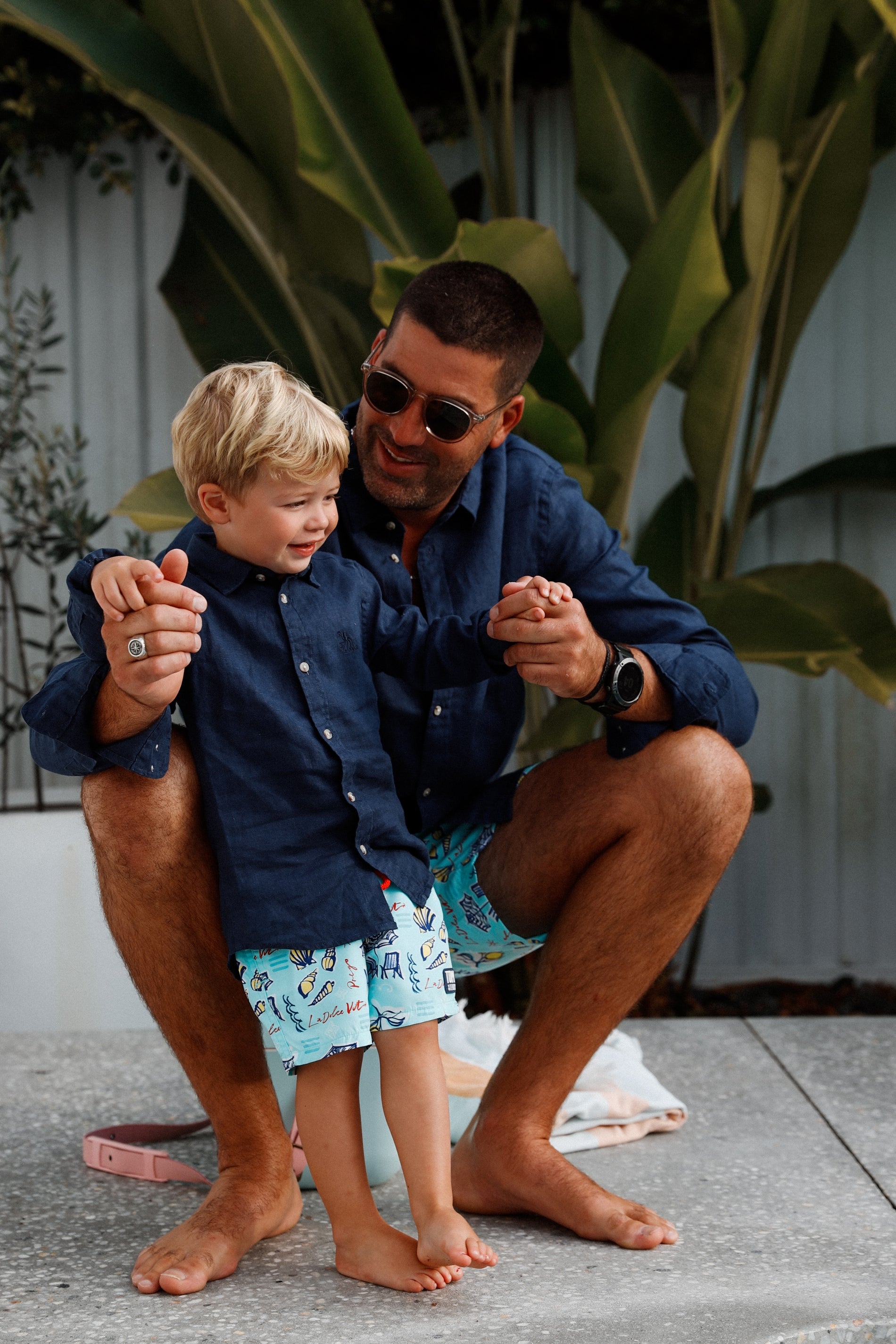 Golden piazzas, terracotta rooftops, and sun-soaked Mediterranean days, our La Dolce Vita Collection brings Italian charm to family beachwear. Quick-dry, ultra-soft swim shorts let father and son match in style for pool, beach, or seaside adventures, capturing the joyful spirit of an Italian summer.