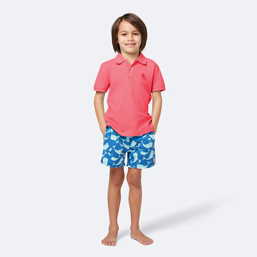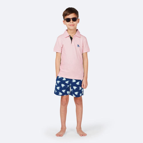 Streamline your little guy’s look with this gorgeously soft and breathable polo shirt in a rich Classic Blue. It’s the perfect wash and wear top to match with all his favourite shorts and swimmers. Crafted from 100% premium Pique Pima Cotton and finished with a neat, ribbed collar, herringbone seam tape and Tom & Teddy side tab.